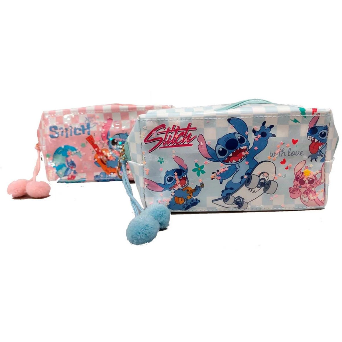 ¡El accesorio más tierno para llevar tus esenciales! Este adorable Estuche Porta Cosméticos de Stitch destaca por su textura de plástico resistente, resaltando su encantador diseño. Es el compañero perfecto para organizar tu maquillaje, artículos de cuidado personal o útiles escolares con un toque de dulzura.