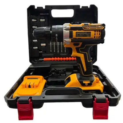 Este versátil kit ofrece un taladro percutor inalámbrico con batería recargable, cargador y una amplia selección de accesorios (puntas, brocas y dados) en un estuche robusto. Es ideal para tareas domésticas de atornillado y perforación ligera a media.